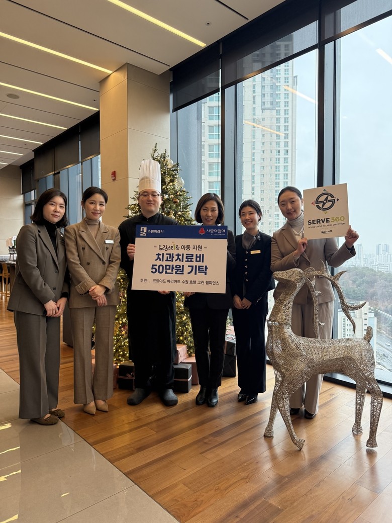 [수원시 세계타임즈=송민수 기자] 코트야드 메리어트 수원 호텔 임직원 동아리 ‘그린 챔피언스’가 “드림스타트 사례 관리 아동의 치과 치료를 위해 사용해달라”며 50만 원을 수원시 드림스타트에 기부했다. 기부금은 드림스타트 사례관리 아동 1명의 치과 치료비로 사용할 예정이다.