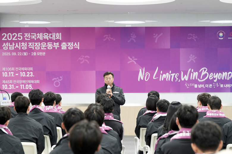 [성남시 세계타임즈=송민수 기자] 성남시(시장 신상진)는 9월 22일 오후 4시 시청 2층 모란관에서 ‘전국체육대회 출전 선수단 59명에 대한 출정식’을 개최했다.