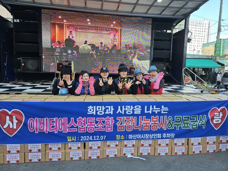 특히 정년 없는 일자리 창출, 저녁이 있는 삶 희망을 주유하는 이 비티에스 협동 조합 경남연수원(원장 이수진)에서도 후원하고 조합원들도 많이 참석해 김장을 치대고 경로당을 직접 찾아 찾아다니며 김장을 전달하기도 했다.