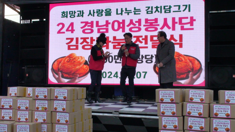 경남여성봉사단은 해마다 해오던 김장 나눔 행사를 경제가 위축된 어려운 상황에서도 천만 원 상당의 김장 나눔 행사를 마산어시장 상인회 주차장에서 가젔다