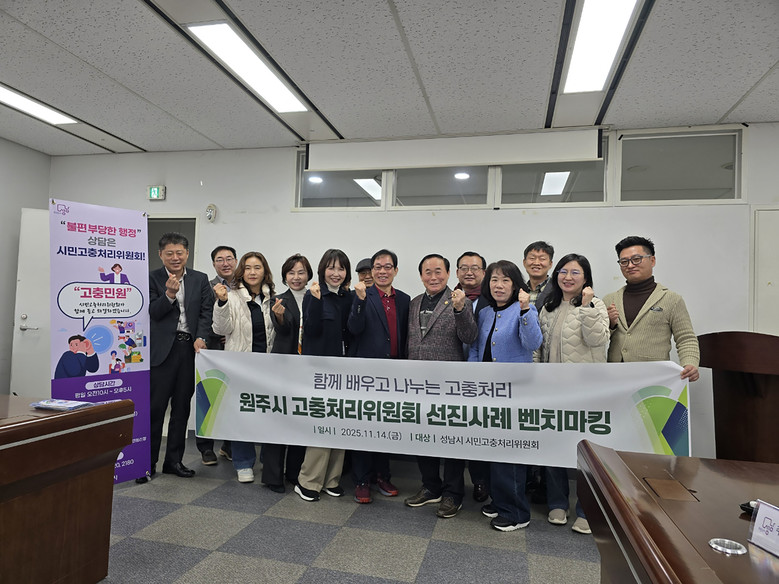 [성남시 세계타임즈=송민수 기자] 성남시(시장 신상진)는 지난 14일 원주시고충처리위원회가 성남시 시민고충처리위원회의 우수사례를 벤치마킹하기 위해 성남시청을 방문했다고 밝혔다.