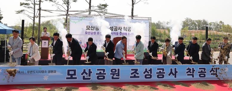 유승영 의장은 축사를 통해 “평택시민들이 오랜 기간 염원해왔던 모산공원의 첫 삽을 뜨는 순간을 함께하여 영광이다”라고 밝히면서 “본 조성공사가 원활하게 추진되어 2026년에는 평택시민들에게 휴식과 활력을 주는 평택의 명소가 되기를 기대한다”고 말했다.