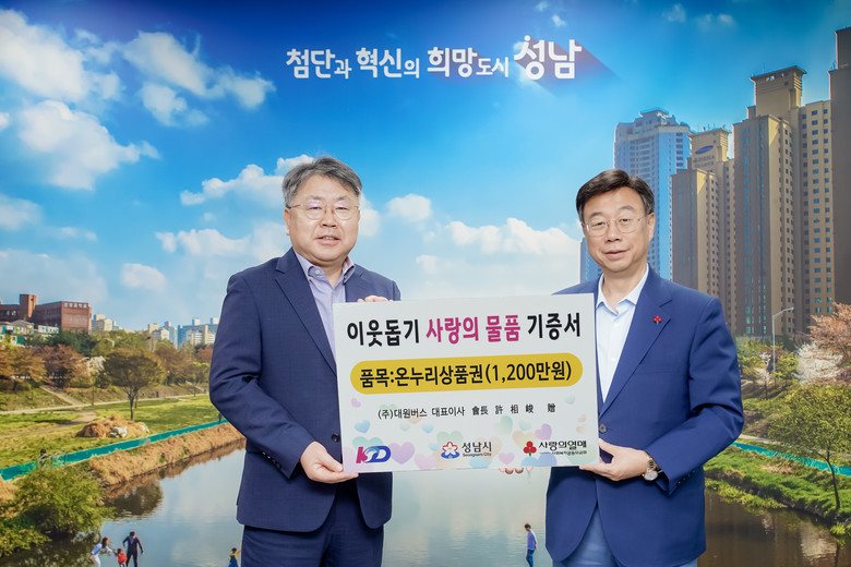 ㈜대원버스도 34개 노선에 421대의 시내·광역버스를 운행하며 800여 명의 운수종사자들이 근무하고 있다. 2019년부터 지금까지 쌀, 상품권 등 약 1억7000만원 상당의 물품을 성남시에 기탁하며 지역사회 나눔에 동참해왔다.