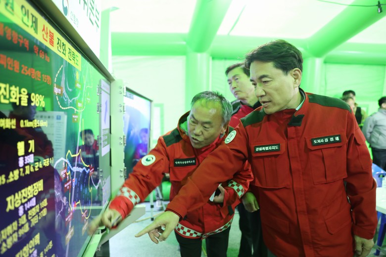 김진태 지사는 인제군 기린면에 설치된 인제군 현장대책본부를 찾아 현장을 지휘하며, 산림청, 소방청, 군‧경 등 유관기관과 협력 체계를 구축해 대응을 총괄하고 있다.