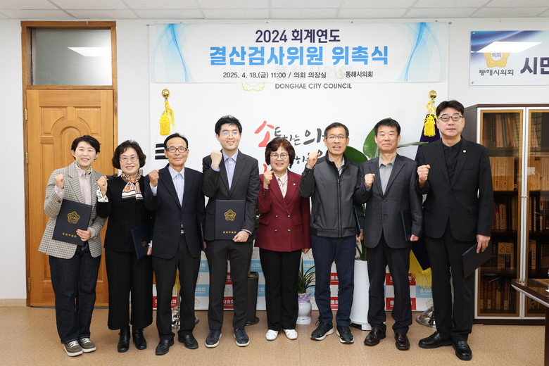 [동해시 세계타임즈=김민석 기자] 동해시의회(의장 민귀희)는 18일(금), 의장실에서 2024회계연도 결산검사위원들을 위촉했다.