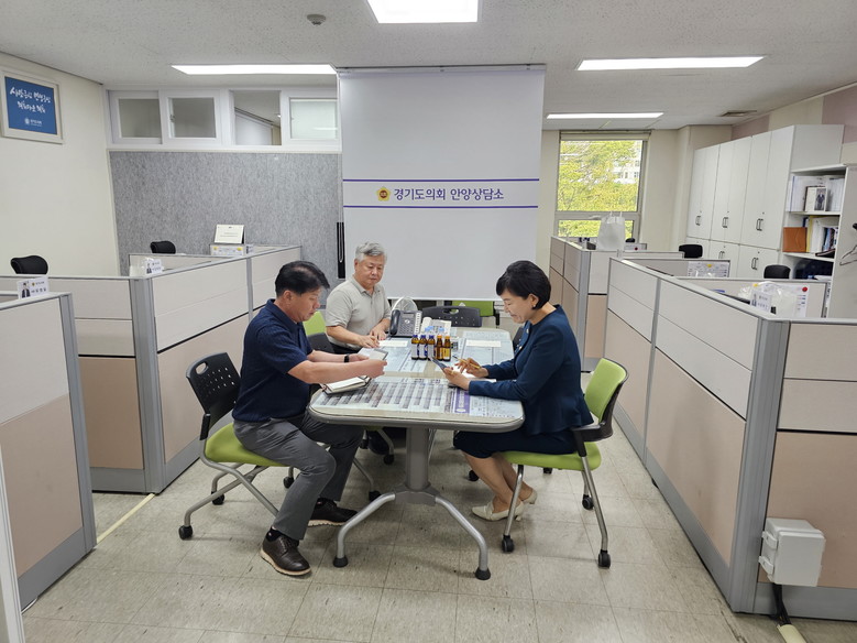 [경기도 세계타임즈=송민수 기자] 경기도의회 이채명 도의원이 26일 안양상담소에서 관내 초등학교 수도 관련 민원 해결을 위해 안양시청 수도시설 관계자와 면담하고 있다.