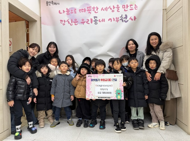 시립동천자이2차 어린이집(원장 박정훈)은 지난 6일 어려운 이웃을 위해 써달라며 동천동에 성금 50만 9000원을 기부했다. 성금은 원생들이 용돈을 저축해 모은 것과 교직원의 자발적으로 기부로 마련됐다. 박 원장은 “어린이들이 이웃과 온정을 나누는 기쁨을 몸소 배울 수 있는 계기가 됐다”며 “조금이나마 도움이 필요한 분들에게 소중하게 쓰일 수 있길 바란다”고 했다.