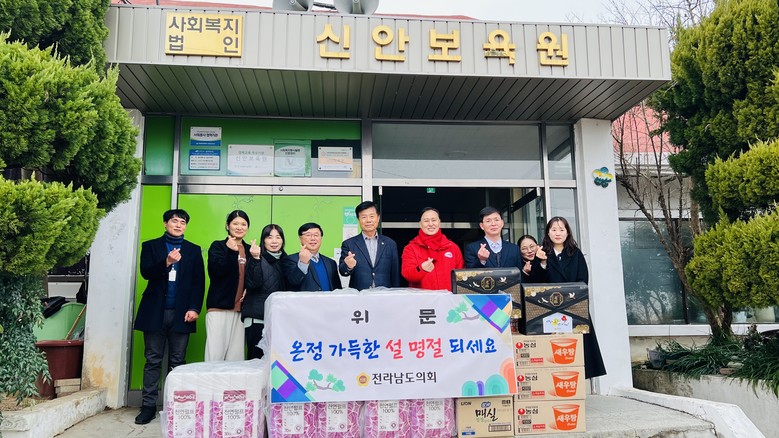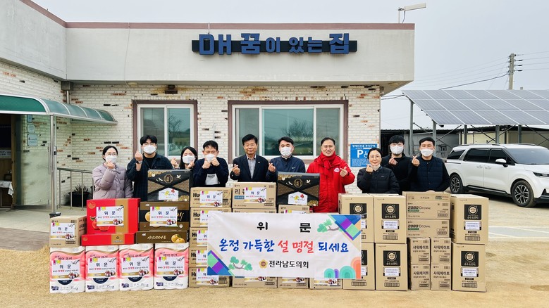 [전남 세계타임즈=우덕현 기자] 김문수 전남도의회 농수산위원장(더불어민주당, 신안1)은 지난 1월 22일 설 명절을 맞아 신안군 압해읍의 ‘신안보육원’과 지적장애인 거주시설 ‘꿈이있는집’을 방문하여 위문품을 전달하고 관계자들을 격려했다.