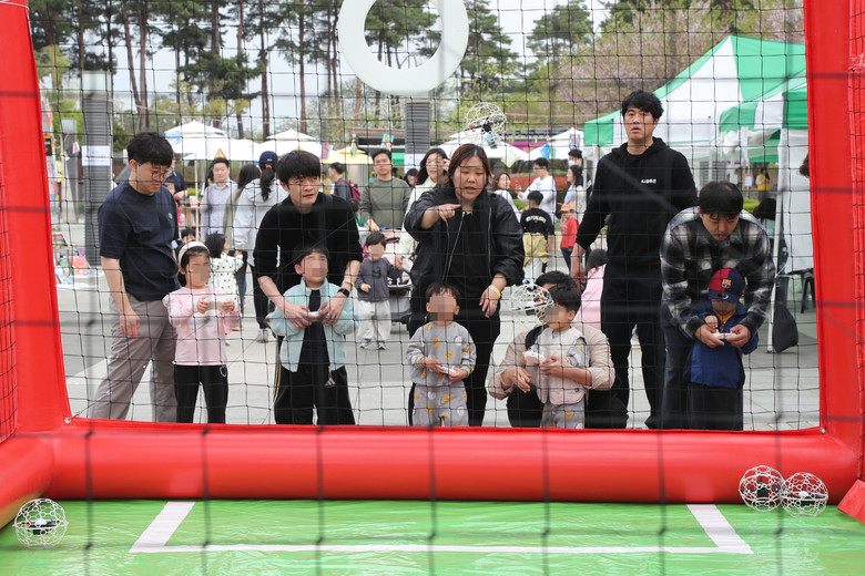 시는 육아종합지원센터 안팎에 영유아존을 마련해 ‘슛슛!! 골인 챌린지(공던지기)’, ‘슝~발사 놀이터(에어로켓, 다트 던지기)’, ‘조물조물 황토나라(황토 촉감 체험)’, ‘방방 점핑 놀이터’, ‘반짝반짝 증강현실(AR) 빛 놀이터’ 등 20개의 체험 부스를 설치 운영한다.