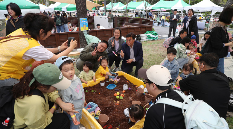 | ▲ 지난 4월 성남시 육아종합지원센터 인근에서 열린 육아데이 행사 때 참여 아동들이 모래놀이 중이다(자료사진) |