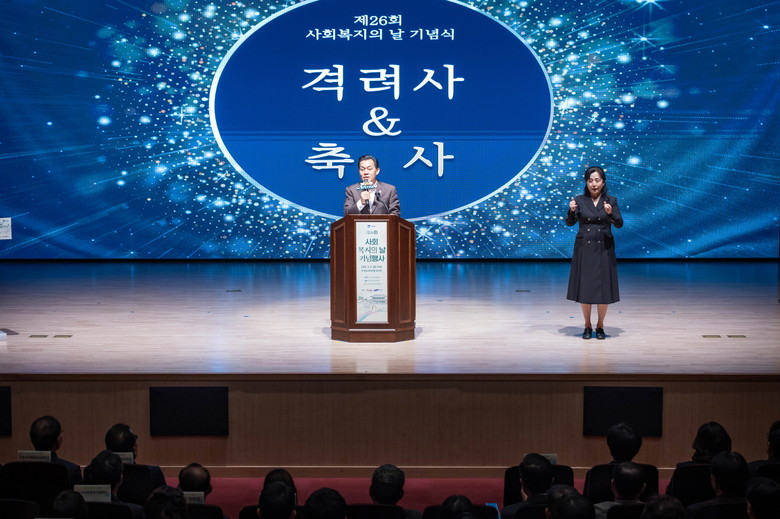 [수원시 세계타임즈=송민수 기자] 수원특례시(시장 이재준)는 4일 빛누리아트홀에서 제26회 사회복지의 날 기념행사 ‘모두의 빛 하나의 수원’을 열고, 사회복지 종사자들을 격려했다.
