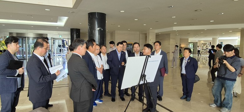 보고회를 마친 정청래 대표 등 민주당 지도부와 김학홍 행정부지사 등 일행은 정상회의장, 미디어센터가 조성 중인 화백컨벤션센터와 PRS, 만찬장 등을 차례로 둘러보고 공사 진행 상황에 대한 점검을 이어갔다.