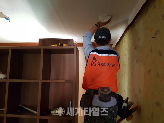 [대전=세계타임즈 이장성 기자] 사랑의 사다리 밴드(리더 이정제)와 동부교육지원청(교육장 최경노)은 13일 오전8시~오후1시까지 대전광역시 중구 산성동에 거주하는 저소득층 초등학생 가정의 도배봉사로 훈훈한 이웃사랑을 전했다.