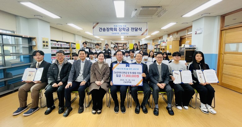 [아산시 세계타임즈=이현진 기자] 아산시 음봉중학교(교장 황성서)는 지난 12월 26일(목), 본관 3층 간송도서관에서 간송장학회(이사장 남상만) 장학금(총 1,700만 원)을 전달하는 교육기부 행사를 가졌다고 밝혔다.
