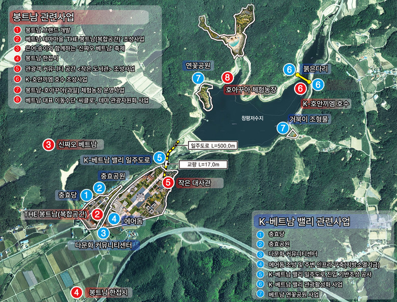 주요사업으로는 베트남 테마마을 ‘THE 봉트남(복합공간)’ 조성사업, 관광객 커뮤니티 공간 ‘작은대사관’ 조성사업, K-호안끼엠 호수 조성사업, 은어·송이와 함께하는 ‘신짜오 베트남’ 축제 등이 있다.