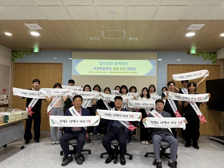 [강원도 세계타임즈=김민석 기자] 강원특별자치도교육청(교육감 신경호)은 9월 8일(월)부터 12일(금)까지 5일간 ‘2025년 반부패 청렴 주간’ 행사를 운영하며, 행사기간 동안 교육지원청별로 저경력공무원 청렴 공감 캠페인을 실시한다고 밝혔다.