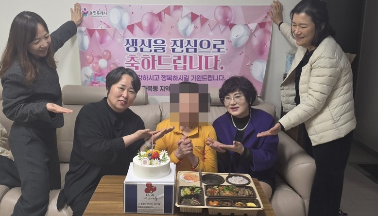 마북동 지역사회보장협의체(민간위원장 최은숙)는 27일 생신을 맞은 홀로 사는 어르신 2명에게 케이크를 전달했다. 협의체 위원들과 마북동 공직자들은 생신을 맞은 어르신 댁을 직접 방문해 케이크와 함께 미역국 등 건강 도시락을 전달하고, 축하 노래를 부르며 생신을 축하했다. 이날 케이크를 받은 한 어르신은 “혼자 지내다보니 생일도 잊고 지나가기 일쑤였는데, 이렇게 맛있는 케이크와 음식을 들고 찾아와 직접 노래까지 불러주니 마음이 따뜻해진다”고 감사를 전했다. 이번 활동은 협의체 특화사업인 ‘생일상은 사랑을 싣고’의 일환으로 이뤄졌다. 협의체는 매달 생신을 맞은 어르신 2명을 선정해 파리바게트 용인마북점으로부터 후원 받은 케이크를 전달한다.