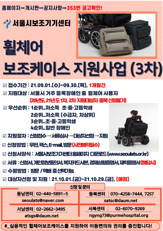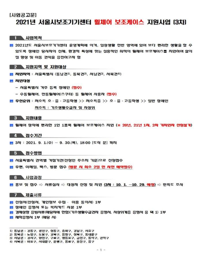 - 권역별 보조기기센터(동남권·동북권·서남권·서북권)에서 9월 한 달 간 접수