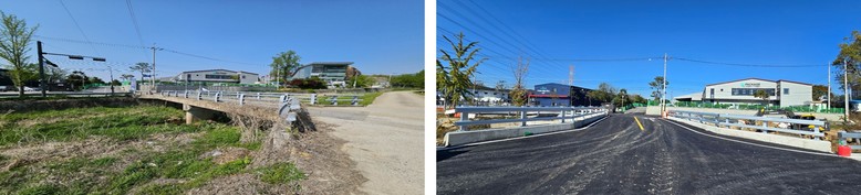 | ▲ 예지교 확장 공사 전(왼쪽)과 공사 후(오른쪽) 모습 |