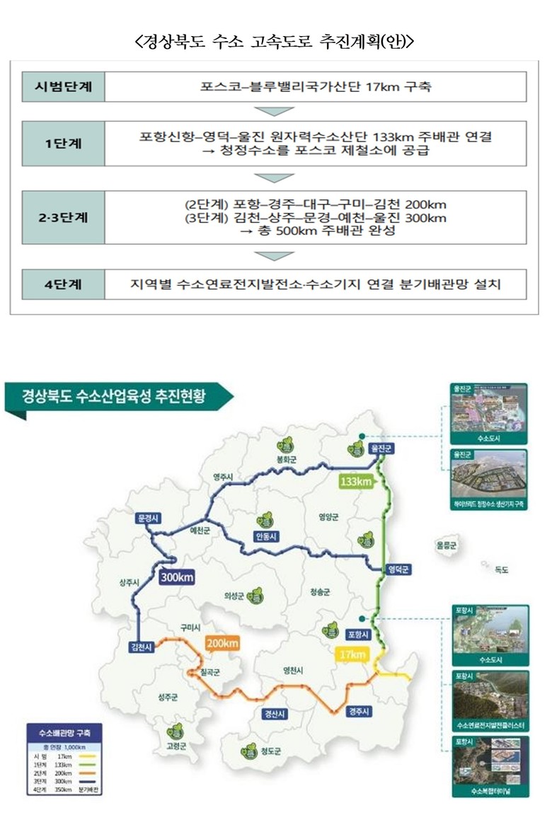 특히, 이번 기본계획은 울진 원자력수소 국가산업단지 조성과 연계해, 원전을 활용한 저렴하고 안정적인 청정수소 대량 생산 기반이 확보될 경우, 송유관 또는 도시가스 배관망과 같은 수소에너지 배관망을 단계적으로 구축해 울진 원자력수소 국가산단과 도내 주요 수요처를 연결하는 수소 생산·유통 통합 인프라 체계 구축이 가능할 것으로 전망했다.