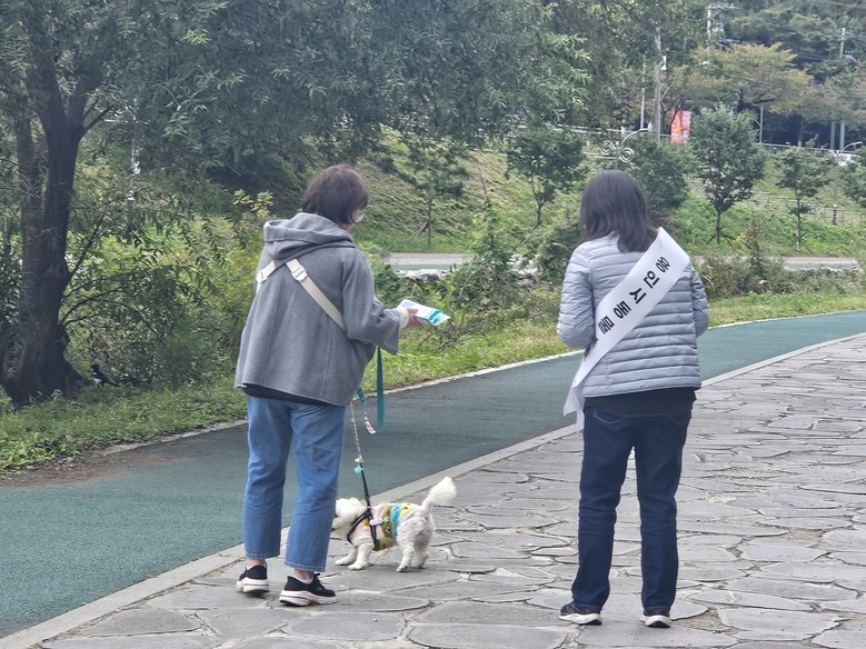 구는 현장에서 ▲반려견 목줄과 인식표 착용 ▲배변봉투 지참 등 반려인이 준수해야 할 기본 사항을 안내하고, 비반려인을 대상으로는 견주의 동의 없이 반려견을 만지거나 먹이를 주지 말 것 등 상호 배려를 위한 펫티켓을 알렸다.