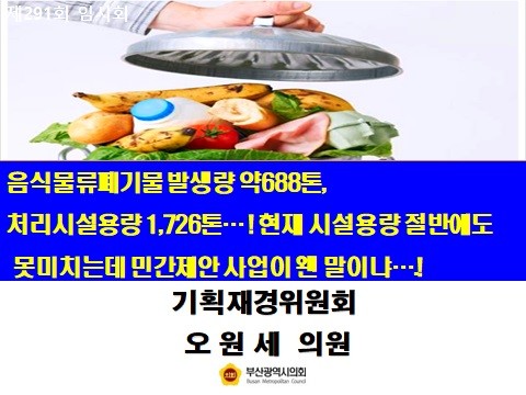 따라서 오 의원은 현재의 음식물류 시설용량 대비 발생량을 고려하여 제대로 검증될 수 있도록 다음과 같이 검토할 것을 촉구했다.