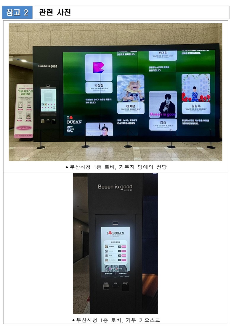 정태기 시 사회복지국장은 “광역자치단체 최초로 청사 내에 조성한 '기부자 명예의 전당'을 기반으로 다채로운 나눔캠페인을 추진하고, 나눔이 일상이 되는 따뜻한 공동체 부산을 조성하기 위해 최선을 다하겠다”라고 전했다.
