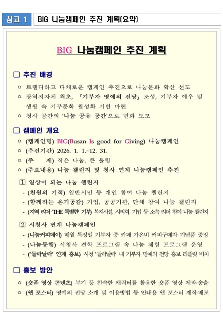 작은 나눔, 큰 울림… 부산시, 나눔이 일상이 되는 빅(BIG) 나눔캠페인 추진