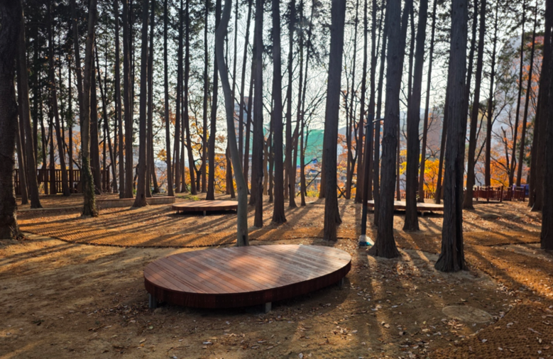 ◈ ▲용성계곡과 편백나무 사이 숲속 평상 ▲놀이마당 ▲휴게공간 ▲황톳길 등 조성돼… 개장식은 10:30 가족마당에서 열려