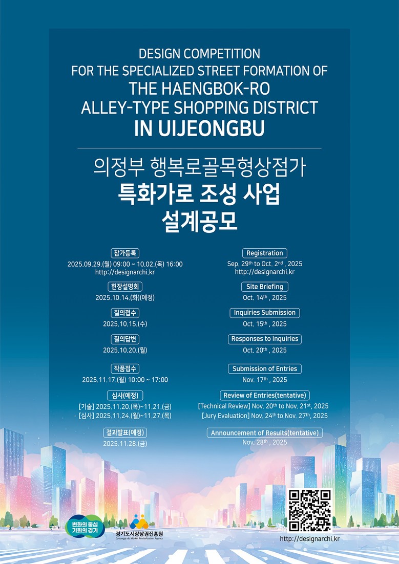 ○ 우수한 건축 디자인 요소 반영한 경기도형 전통시장 혁신모델 구축 [경기도 세계타임즈=송민수 기자] 경기도와 경기도시장상권진흥원(이하 경상원)은 안산시 ‘한대앞역 상점가’, 의정부시 ‘행복로 골목형상점가’에 경기도형 전통시장 혁신모델 구축을 위한 국제 건축 디자인 설계공모를 진행한다고 18일 밝혔다.