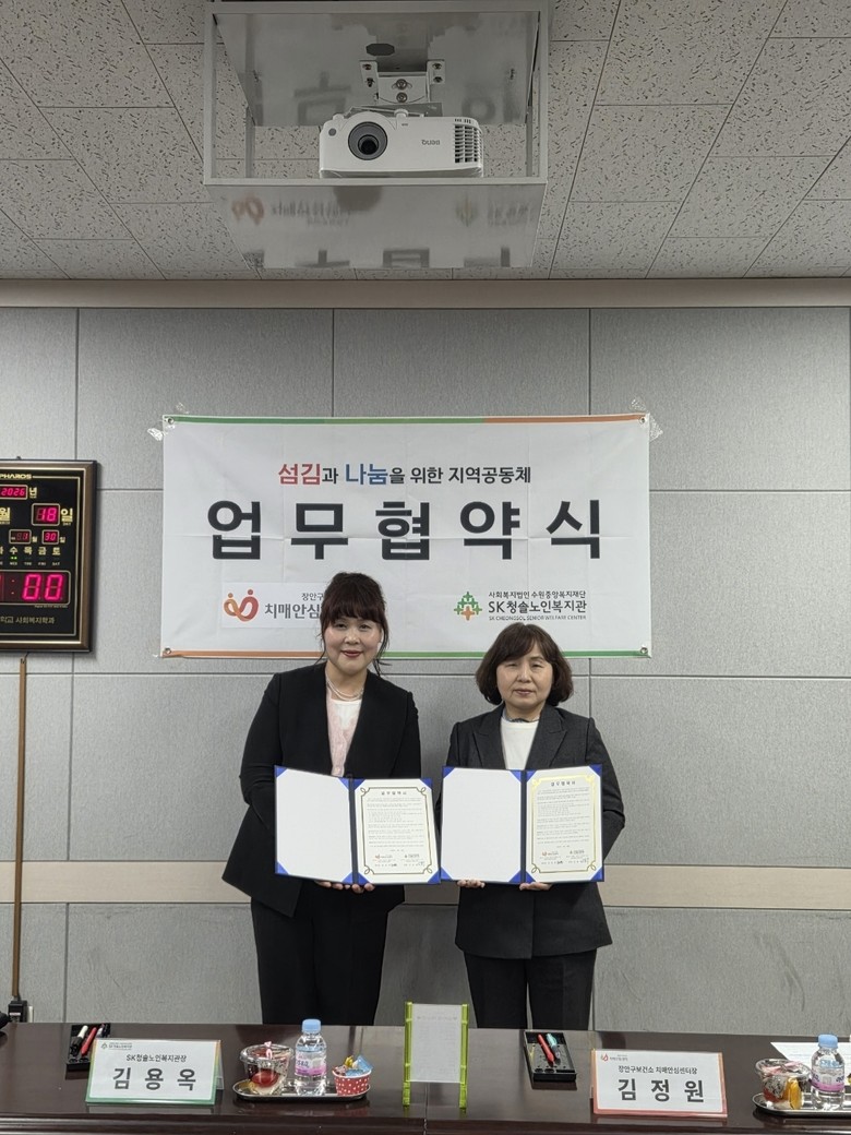 [수원시 세계타임즈=송민수 기자] 수원시 장안구 치매안심센터와 SK청솔노인복지관이 치매관리사업과 노인복지 활성화를 위한 업무협약을 체결하고, 협력을 약속했다.