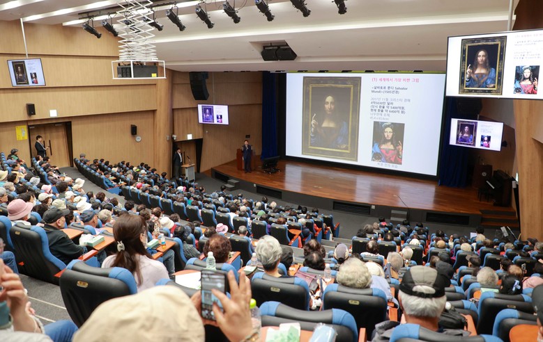 이상일 시장은 이날 시민 300여 명을 대상으로 '1억 달러 이상의 초고가 그림들과 화가 스토리'를 주제로 한 강연을 했다.