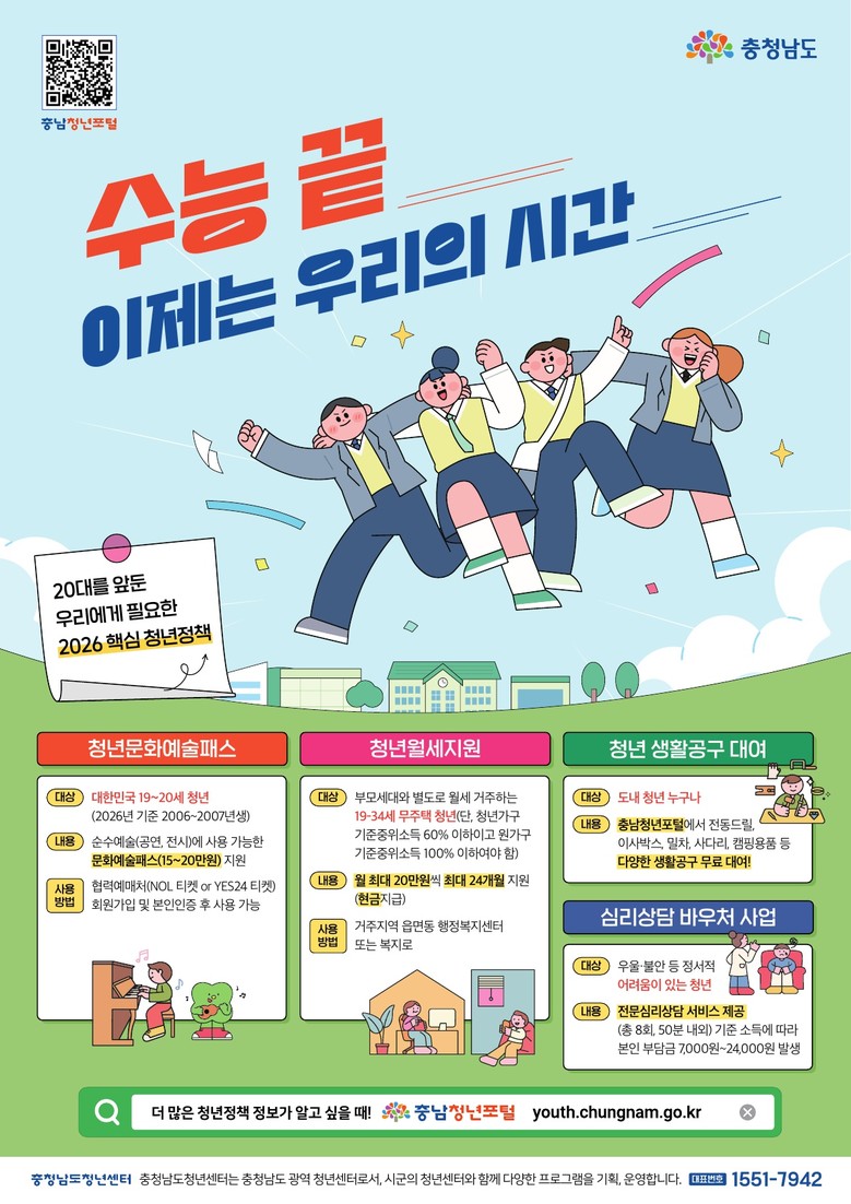 도 관계자는 “고교 졸업 시기는 진학·취업·주거 등 삶의 선택이 본격적으로 시작되는 중요한 시점”이라며 “청년들이 필요한 정책을 제때 알고 활용할 수 있도록 현장 중심의 홍보를 강화하고 청년의 삶에 실질적인 변화를 줄 수 있는 정책을 지속적으로 확대해 나갈 것”이라고 말했다.