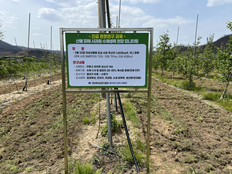 경북은 전체 사과 재배면적이 19,257㏊로 전국 재배면적(33,313㏊, 2024년 통계청)의 약 58%를 차지하는 사과 주산지이며, 이번 산불은 지역 농가에 막대한 피해를 안겼다.