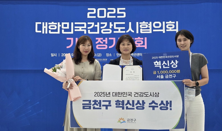 [금천구 세계타임즈=이장성 기자] 금천구(구청장 유성훈)는 대한민국건강도시협의회(Korea Healthy Cities Partnership, KHCP)가 주관하는 2025 대한민국건강도시상 공모에서 ‘혁신상’을 수상했다고 18일 밝혔다.