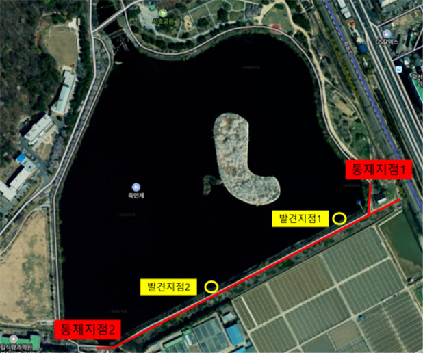 해당 폐사체는 지난 21일 축만제에서 주민이 발견해 신고한 것으로, 수원시는 즉시 수거 후 국립야생동물질병관리원에 AI 검사를 의뢰해 26일 결과를 통보받았다. 이어 두 번째 큰기러기 폐사체를 발견해 검사를 의뢰한 상태다.