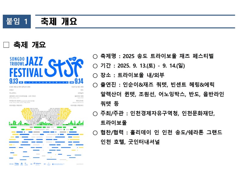 [인천 세계타임즈=심하린 기자] (재)인천문화재단에서 운영하는 인천 송도에 위치한 예술공간 트라이보울은 오는 9월 13일(토), 14일(일) 양일간 ‘2025 송도 트라이보울 재즈 페스티벌’을 개최한다고 밝혔다.