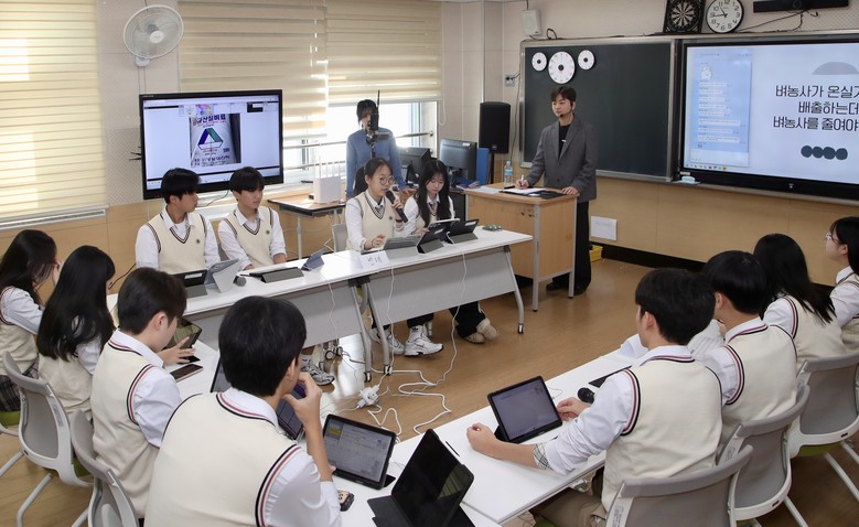 수업 시연에는 봉황고 김민주 교사가 ‘K-POP의 활용과 지역 연계 버스킹 실천’을 주제로 음악 수업을 진행했고, 무안고 박유성 교사는 ‘기후변화’를 주제로 한 독서토론 과학 수업을 펼쳐 미래교실의 다채로운 수업 변화를 보여줬다.