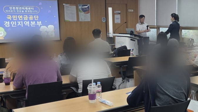 | ▲ 인천시청년미래센터 고립은둔청년들이 최근 국민연금공단 경인지역본부를 찾아 강의를 듣고 있다. |