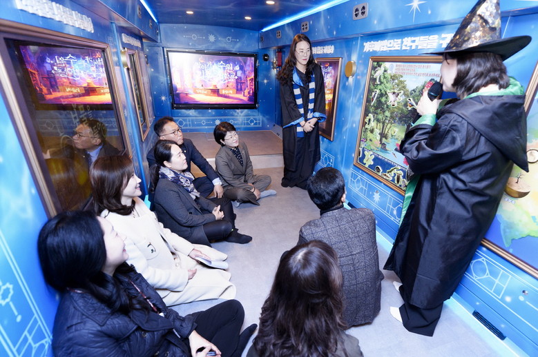 ‘찾아가는 수원 기후마법학교’는 2024년 1월부터 추진된 수원시 이동환경교실 체험차량 제작사업으로, 수소전기버스를 개조해 체험형 환경교육 공간으로 만든 것이다.