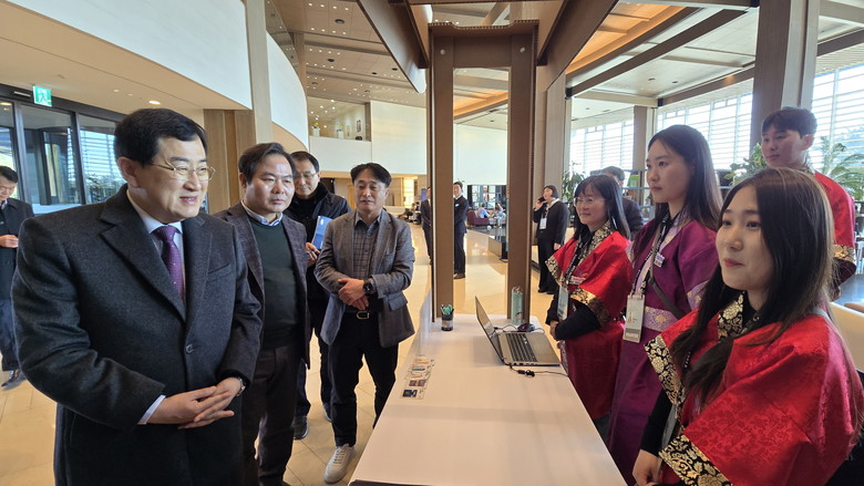 1층에 준비된 도내 시군 홍보관, 서라벌 천년 시간 여행존을 들러서는 홍보영상 송출 상태와 종합안내데스크의 인공지능(AI) 기반 안내서비스 기기를 시연했다.