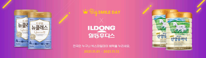 [세계타임즈 김인수 기자]일동후디스가 G마켓과 옥션이 동시 진행하는 연중 최대 쇼핑 축제인 ‘빅스마일데이’에 참가하며, 단독 브랜드관을 오는 12일(금)까지 운영한다고 밝혔다.