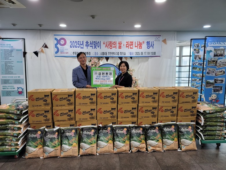 ㈜금천환경은 시흥1동과 시흥4동의 생활쓰레기를 수거하는 청소대행업체다. 관할지역인 시흥1동과 시흥4동의 어려운 주민들을 위해 동별로 500만 원 상당의 백미(10kg) 60포와 라면 100박스를 기탁한 것이다.