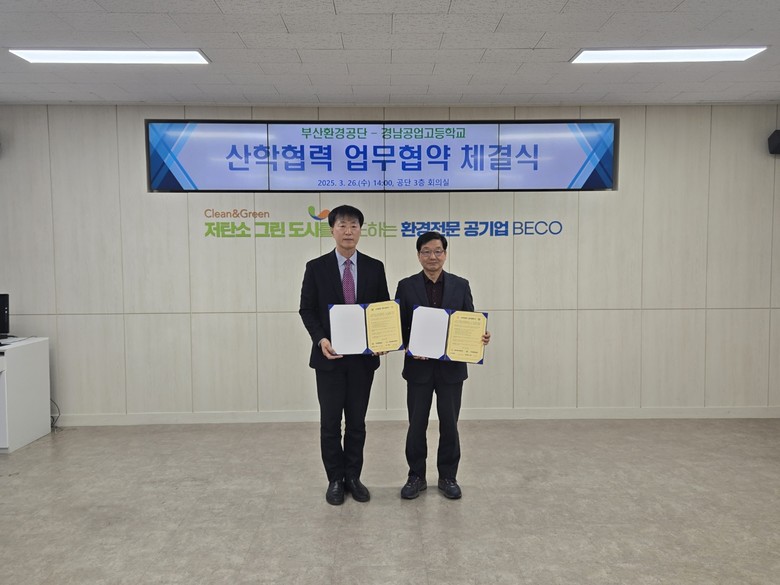 경남공고는 이번 협약을 통해 학생들에게 보다 체계적이고 실질적인 환경 교육 기회를 제공해 지역 사회의 우수한 환경인재를 육성할 수 있게 됐다.