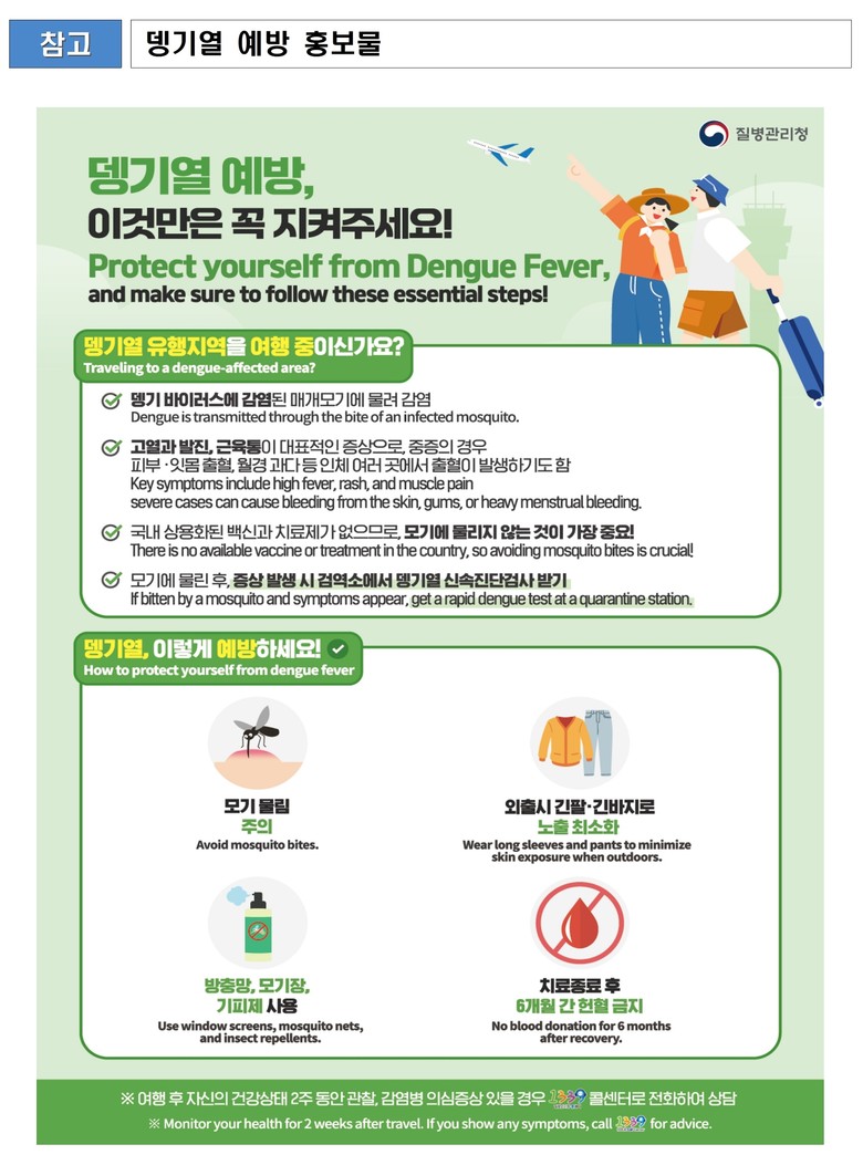 시는 올해 동남아, 중남미 등 해외여행자를 대상으로 뎅기열 감염 예방수칙 홍보 등을 실시할 예정이다.