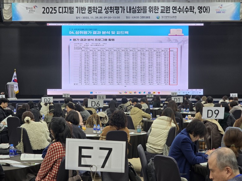 강은희 교육감은 “성취평가제는 학생의 수준을 정확히 읽어내는 평가 체제이며, 그 신뢰도는 결국 교사의 문항 설계 역량에서 비롯된다”며 “올해 연수는 교과별 특성을 반영해 두 차례로 나누어 진행하는 만큼, 대구 중학교 성취평가의 질을 한 단계 끌어올리는 전환점이 될 것”이라고 강조했다.