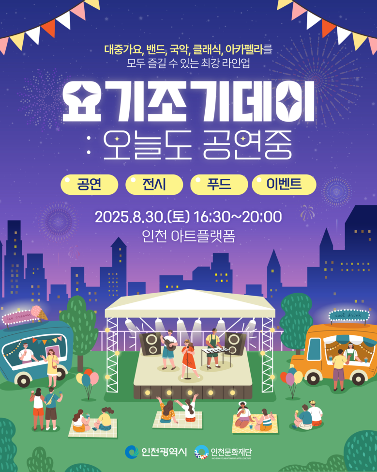 음악 공연뿐 아니라, 상반기 공연의 순간들을 기록한 전시와 시민 참여 이벤트, 먹거리 부스도 마련되어 인천 도심 속에서 즐기는 한여름의 음악 축제로 꾸며진다. 남녀노소 누구나 자유롭게 참여할 수 있어 가족 단위 시민들의 발길도 기대된다.