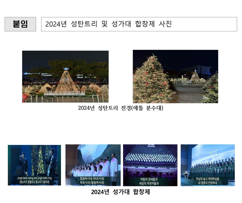 식전공연에서는 어린이 율동단의 밝은 무대, 피아노 5중주, 혼성콰이어 공연이 이어지며, 시민들에게 감동과 위로를 전할 예정이다. 본행사에서는 성탄 감사주차장 개방 등 지역사회 나눔 활동에 앞장선 교회들을 격려하는 시간도 마련된다.