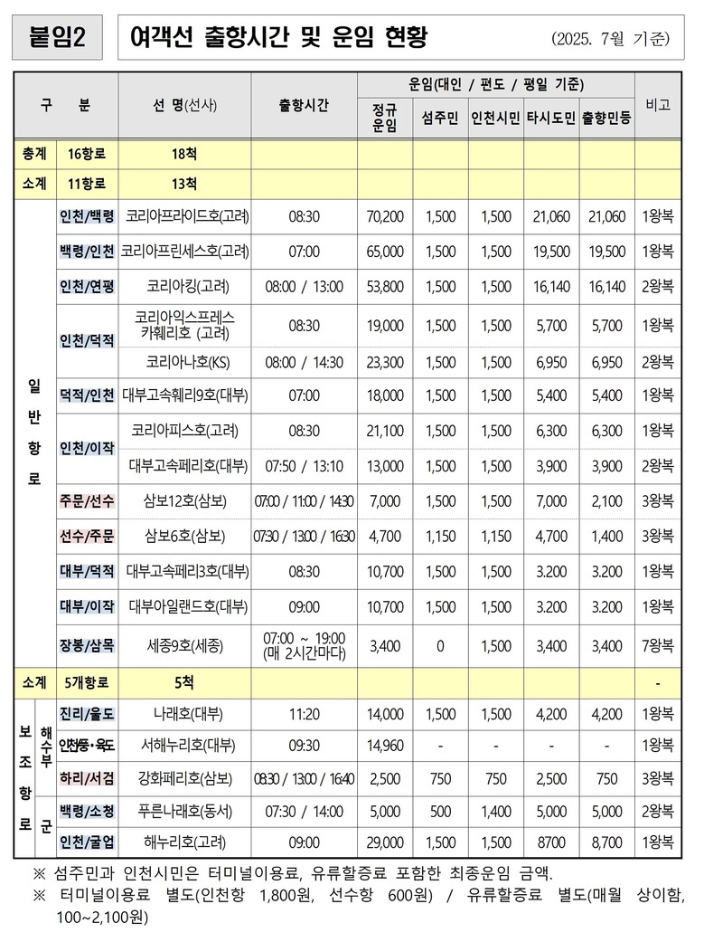 실제 이용객의 체감 반응도 긍정적이다. 백령도를 찾은 한 가족은 “교통비를 아낀 덕분에 현지에서 숙박과 먹거리, 체험을 더 풍성하게 즐길 수 있었다”며 i-바다패스 정책에 대한 만족감을 드러냈다. 교통비 절감이 곧 체류형 소비로 이어져 지역 경제를 살리는 선순환 구조가 만들어지고 있는 것이다.