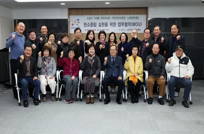 ▲ 19개 동 주민자치회, 주민자치지원단이 노원환경재단과 동 단위 탄소중립